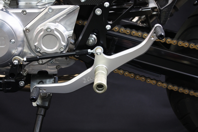シフト方法をシーソータイプにすることにより、ペダルをかき上げる動作が不要となり、コーナリング時のつま先と地面の接触を無くします。