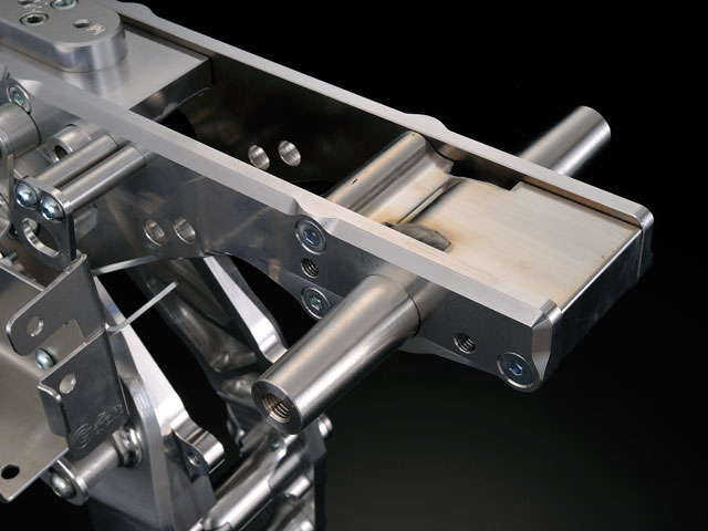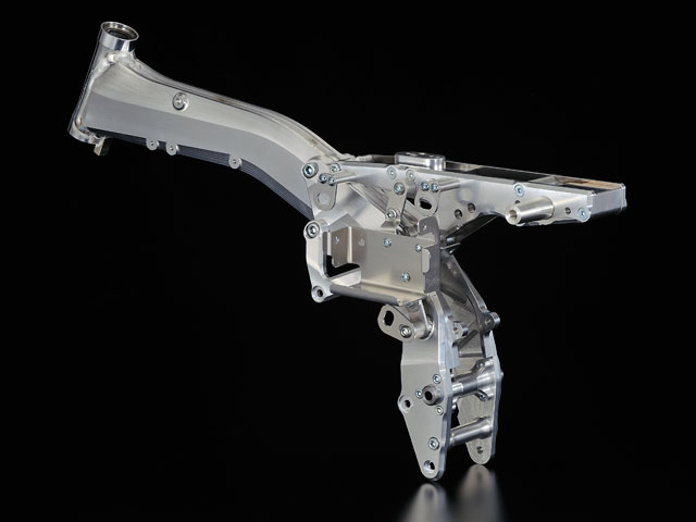 ●ピボット位置を10mm 変更・・・スイングアームピボット位置、エンジン搭載位置を見直し、より良いアンチスクワット効果を得ています。