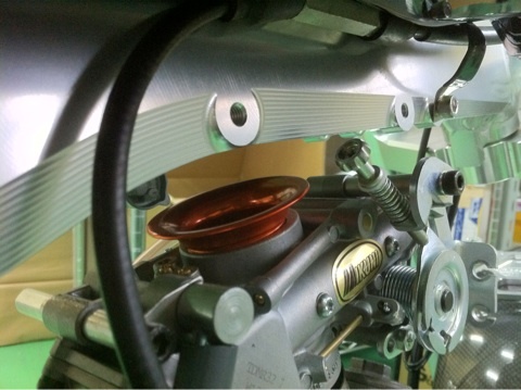 ※ダウンドラフトキャブレター(TDMR32)の装着確認ができました(マニホールドはキタコ製を使用)