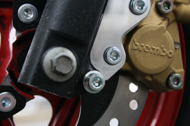 モンキーR純正フロントフォーク(Φ30)に、ブレンボ2P(ヤマンボ)を装着できるキャリパーサポートです。Φ190ローターを使用します。